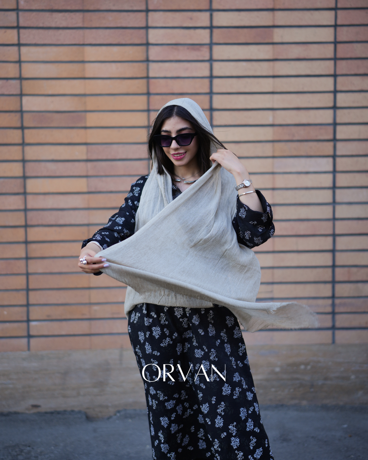 برای ظاهری مینیمال و شیک، این شال را با مانتو یا عباهای ساده، کفشهای تخت یا کتانی و کیف پارچهای ست کنید. اگر اهل اکسسوری هستید، گوشوارههای دستساز مینیمال جلوهاش را چند برابر میکنند.