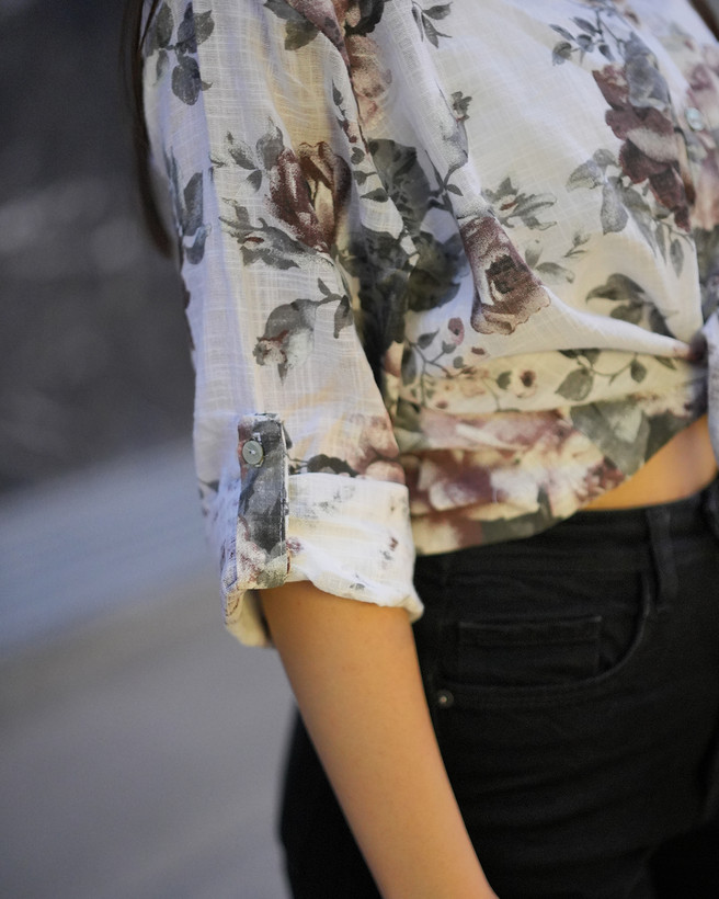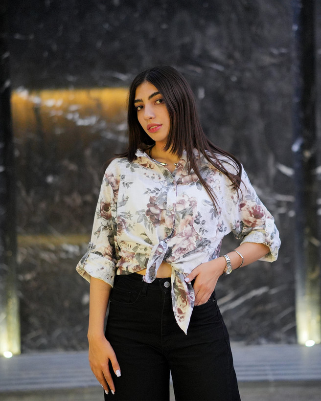 این شومیز گلدار زنانه از پارچهی لینن ایتالیایی با کیفیت ممتاز تهیه شده است. زمینه سفید پارچه با گلهایی لطیف و زنانه تزئین شده که ظاهری دلنشین، تابستانی و در عین حال شیک ایجاد میکند.