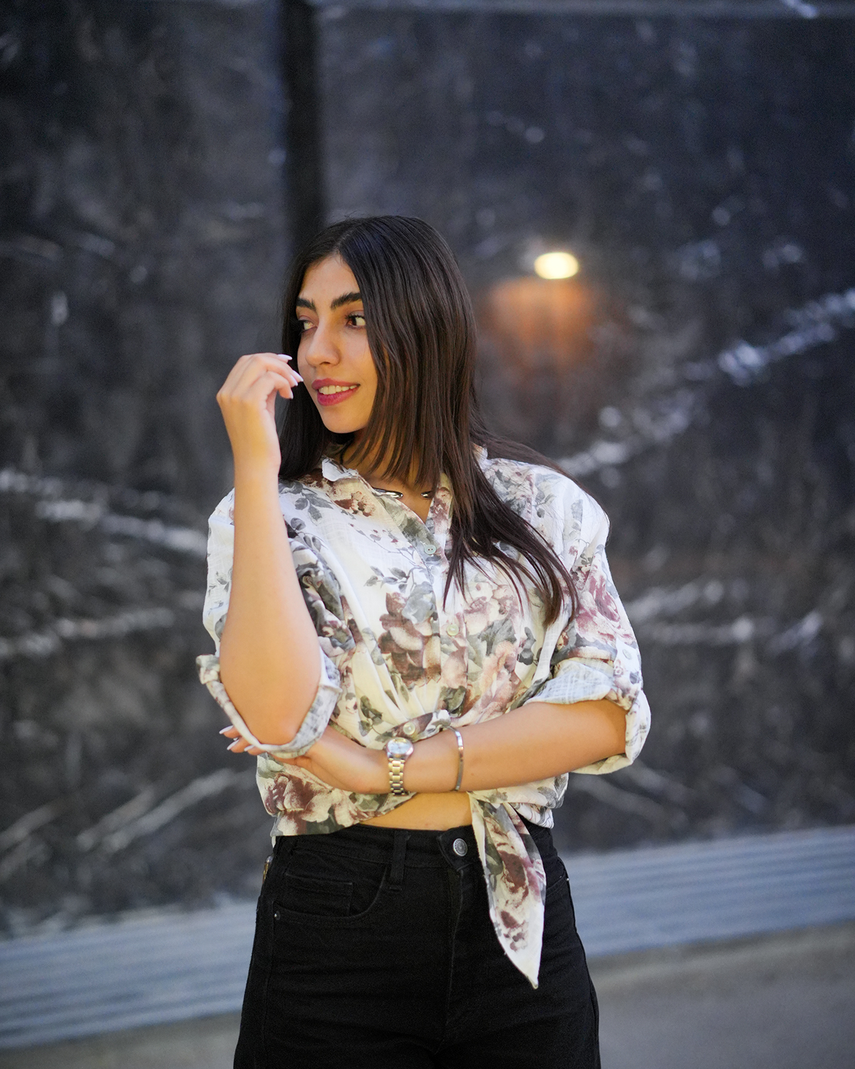 این شومیز گلدار زنانه از پارچهی لینن ایتالیایی با کیفیت ممتاز تهیه شده است. زمینه سفید پارچه با گلهایی لطیف و زنانه تزئین شده که ظاهری دلنشین، تابستانی و در عین حال شیک ایجاد میکند.