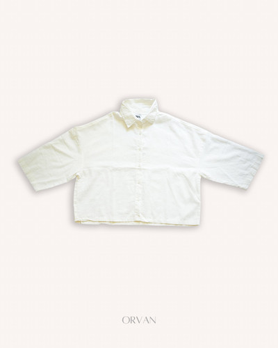 شومیز سفید زنانه کراپ ساده | نیمآستین و لینن خنک