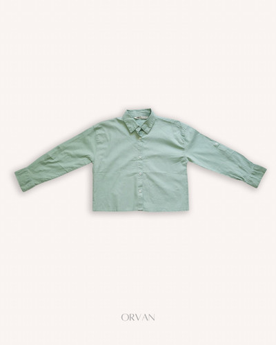 شومیز زنانه لینن سبز پستهای روشن | طراحی ساده و آستیندار